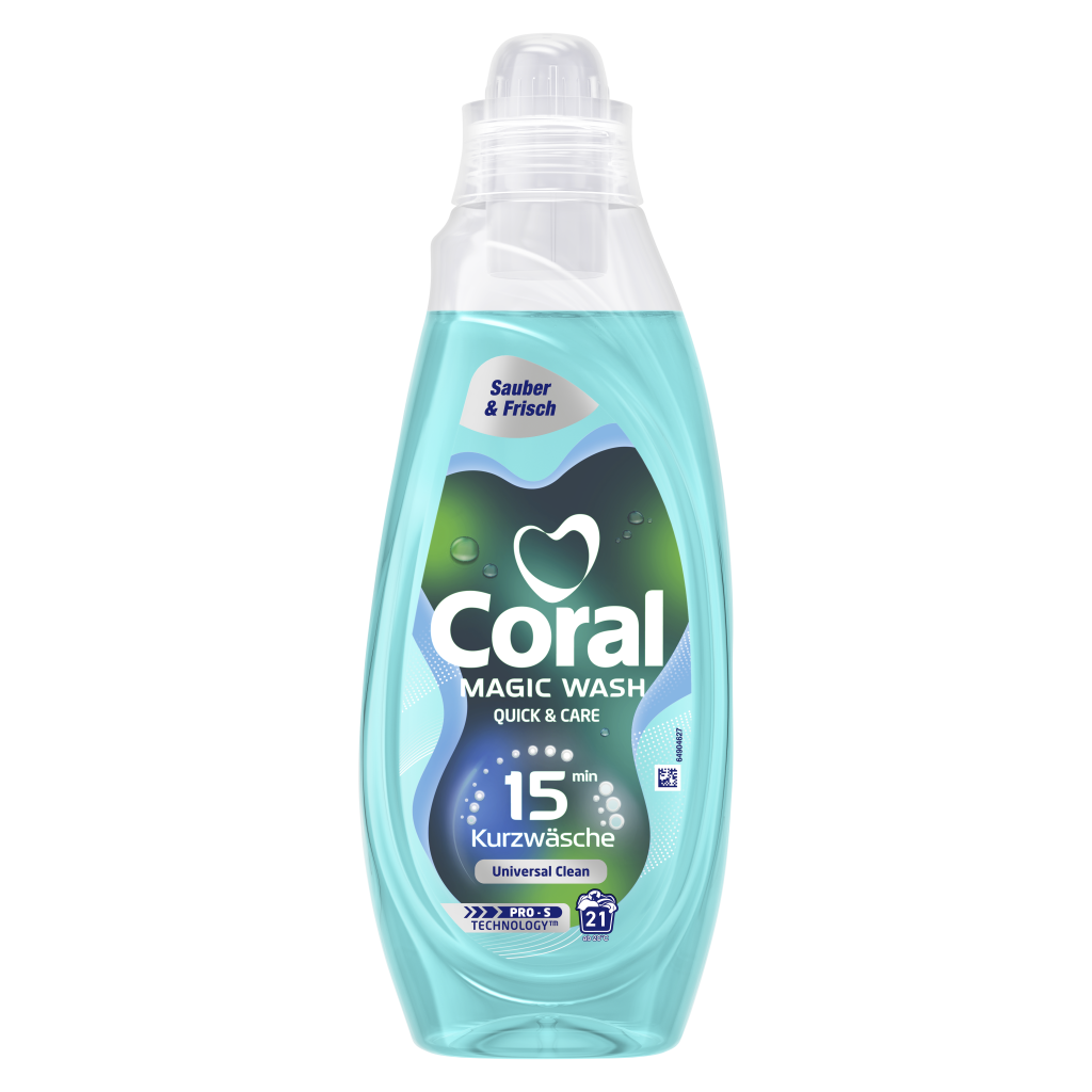Mit Coral Magic Wash bringt die bekannte Marke Coral eine echte Innovation auf den österreichischen Markt: das erste Waschmittel, das speziell für Kurzwäscheprogramme ab 15 Minuten entwickelt wurde.