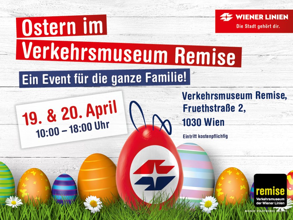 Am 19. und 20. April verwandelt sich das Verkehrsmuseum Remise in eine fröhliche Osterwelt für die ganze Familie. Die Wiener Linien laden zu einem bunten Fest mit tollen Aktionen, kreativen Stationen und jeder Menge Osterstimmung ein. Von der Märchenstunde bis zum Simulator-Erlebnis – hier ist für alle etwas dabei.